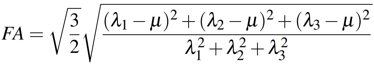 FA is a normalized measure of the fraction of the tensor's magnitude due to anisotropic diffusion [2], it is normalized in the range [0,1],